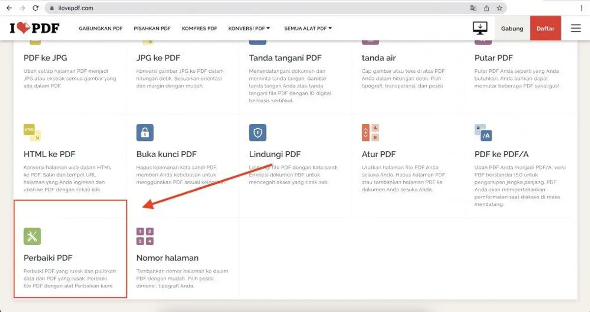 2. Memperbaiki PDF secara Online melalui Website ( Online)